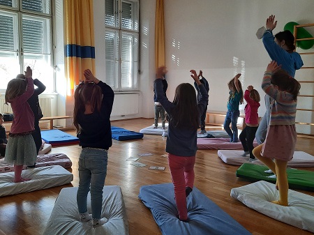 Am Beginn oder zum Abschluss sprachlicher Angebote oder Bewegungseinheiten und auch nach dem Mittagessen genießen die Kinder dieses „Durchschnaufen“ und „Kräftesammeln“ für weitere spannende Aktivitäten.
