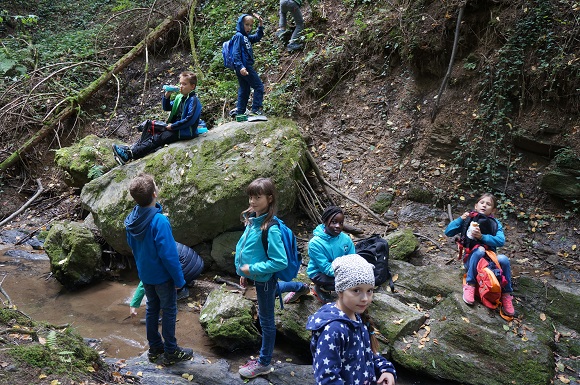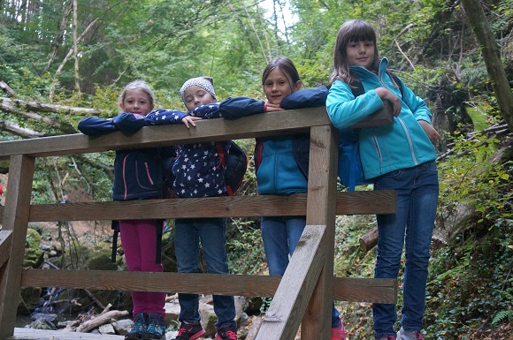 Viel Spaß machte den Kindern der Weg durch die schmale Schlucht der