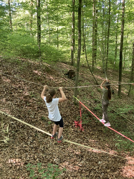 Die Kinder bauten eine „Holz-Schatzkiste“, sammelten begeistert „Waldschätze“, legten mit Naturmaterialien ein „Waldmandala“, gestalteten ein „Waldkunstwerk“, spielten Tierrätsel-Spiele, mussten Bäume blind wiedererkennen, überquerten einen Graben mittels Slackline und versuchten sich auch als Waldarbeiter.